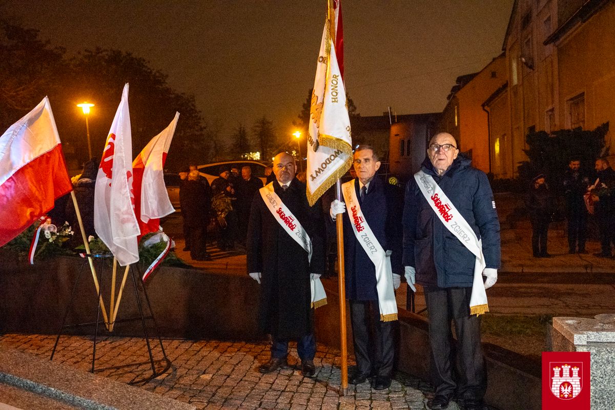Poczet sztandarowy przy Pomniku Wolności i Niepodległości