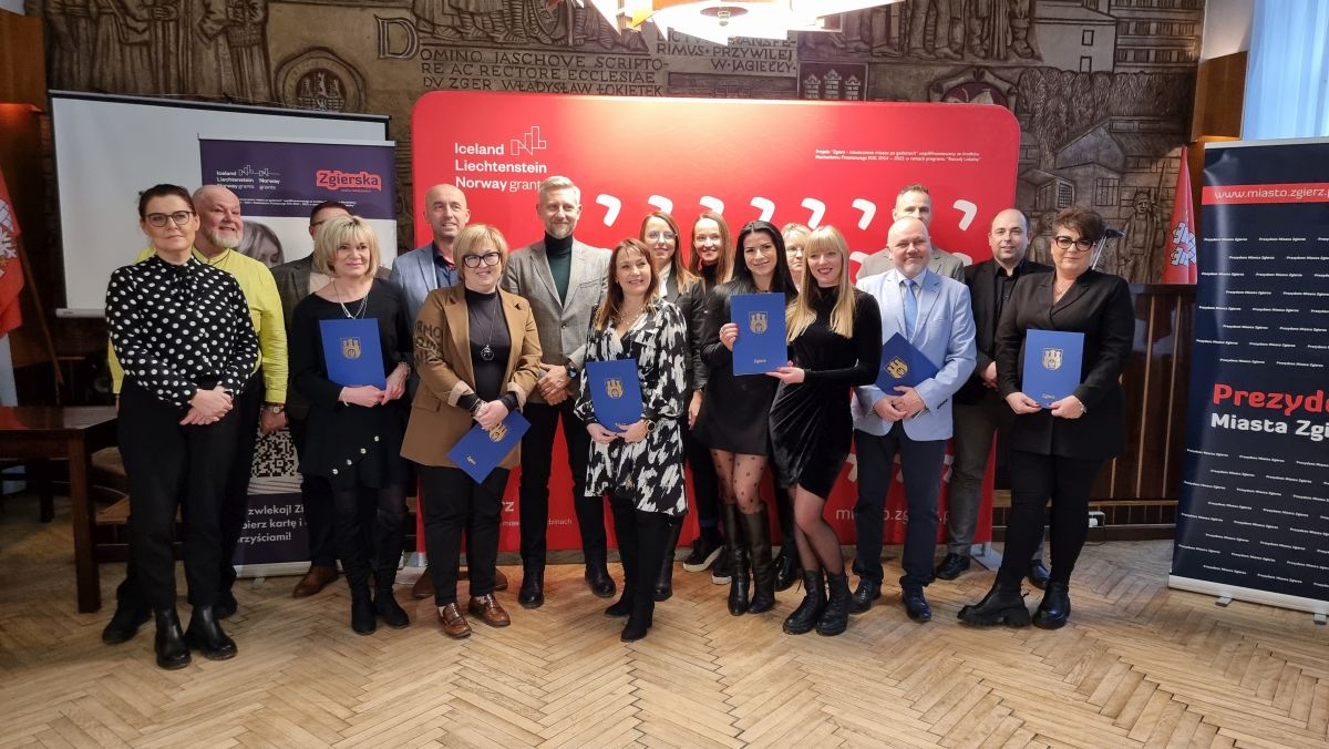 Partnerzy po podpisaniu porozumienia w sali konferencyjnej Urzędu Miasta Zgierza