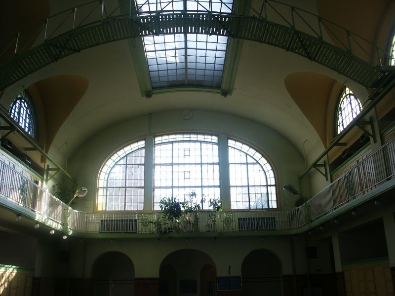 obecny widok na przeszklony dach w łaźni miejskiej