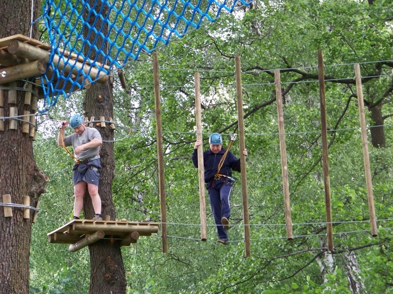 ludzie podczas wspinaczki w parku linowym