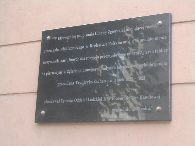 180. rocznica podpisania Umowy Zgierskiej - ściana budynku Zgierskiego Zespołu Szkół Ponadgimnazjalnych im. Jana Pawła II (ul. Długa - od Pl. Kilińskiego 8) - zdjęcie 2002 r.