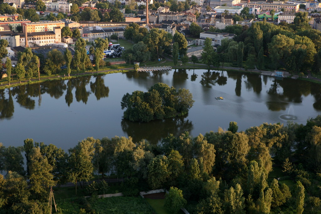 Miasto Zgierz - Staw "Cylkiego" w Parku Miejskim im. T. Kościuszki - widoczna fontanna Miasto Zgierz - Staw "Cylkiego" w Parku Miejskim im. T. Kościuszki - widoczna fontanna