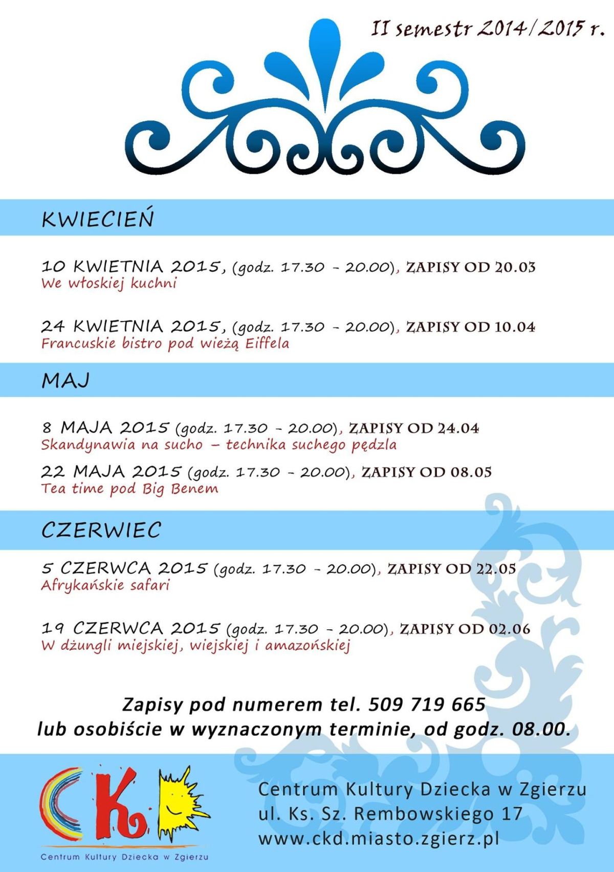 Warsztaty "Z decoupagem przez świat" charakterystyczne dla różnych regionów świata motywy zdobnicze i kolorystyka - "W dżungli miejskiej, wiejskiej i amazońskiej" (koszt udziału 25 zł/os.). Zapisy od 02.06. pod nr tel. 509 719 665