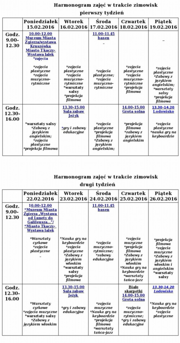 W dniach od 15 do 28 lutego 2016 r. dzieci i młodzież zgierskich szkół mają ferie zimowe.