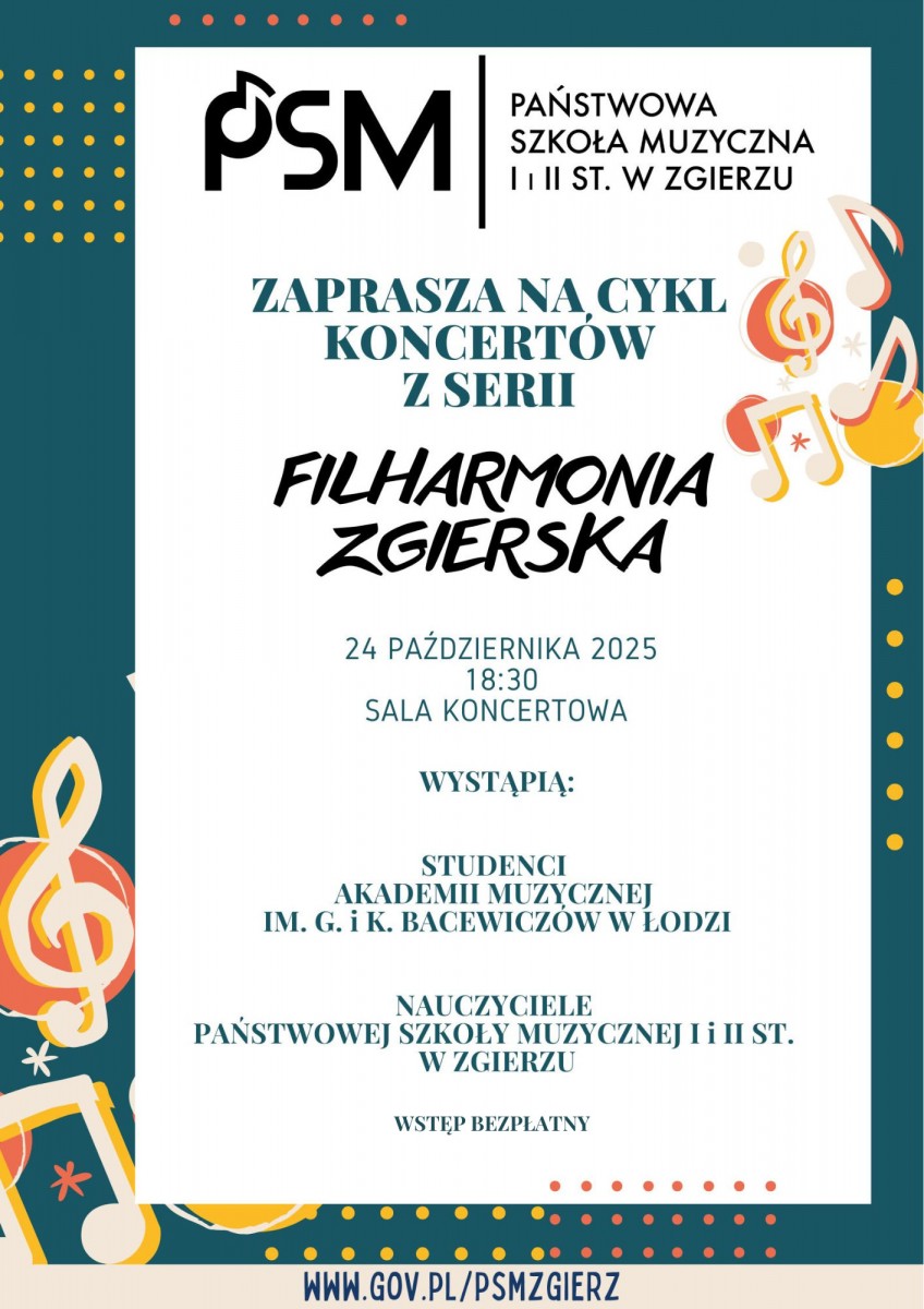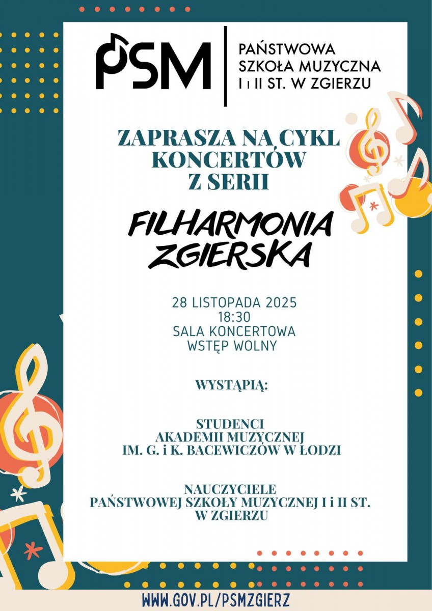 Państwowa Szkoła Muzyczna I i II stopnia w Zgierzu zaprasza wszystkich melomanów na kolejny koncert z cyklu "FILHARMONIA ZGIERSKA".