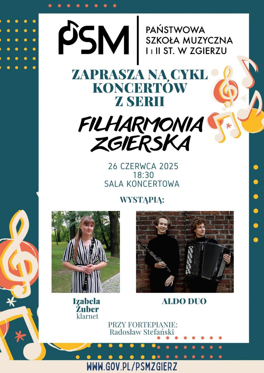 Państwowa Szkoła Muzyczna I i II stopnia w Zgierzu zaprasza wszystkich melomanów na kolejny koncert z cyklu "FILHARMONIA ZGIERSKA".