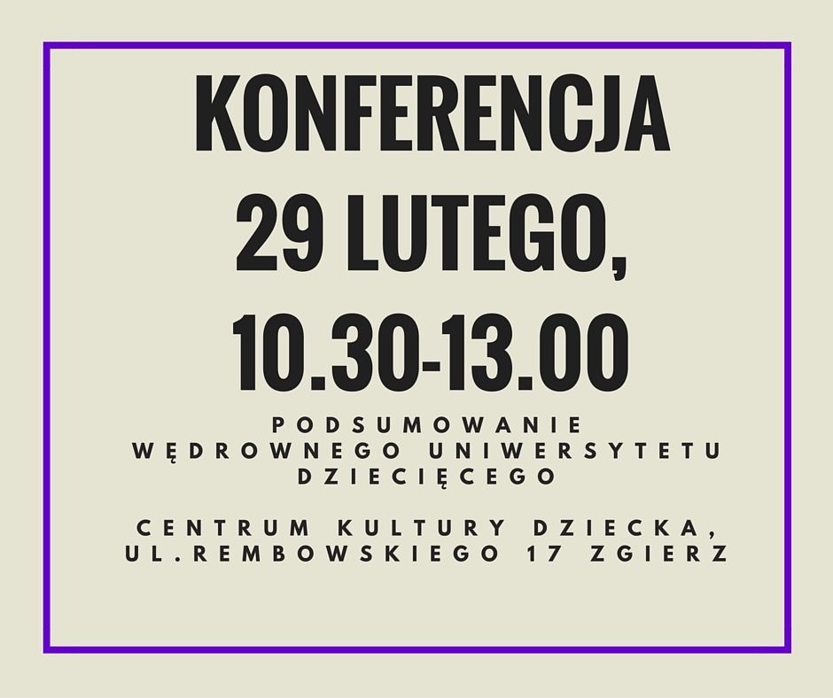Centrum Kultury Dziecka w Zgierzu (ul. Rembowskiego 17) zaprasza