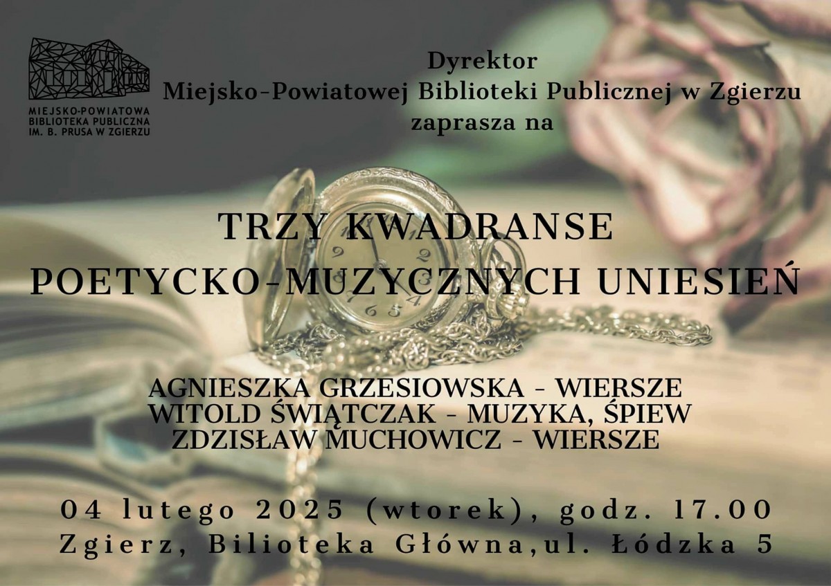 Serdecznie zapraszamy miłośników poezji i muzyki na "Trzy kwadranse poetycko-muzycznych uniesień".
