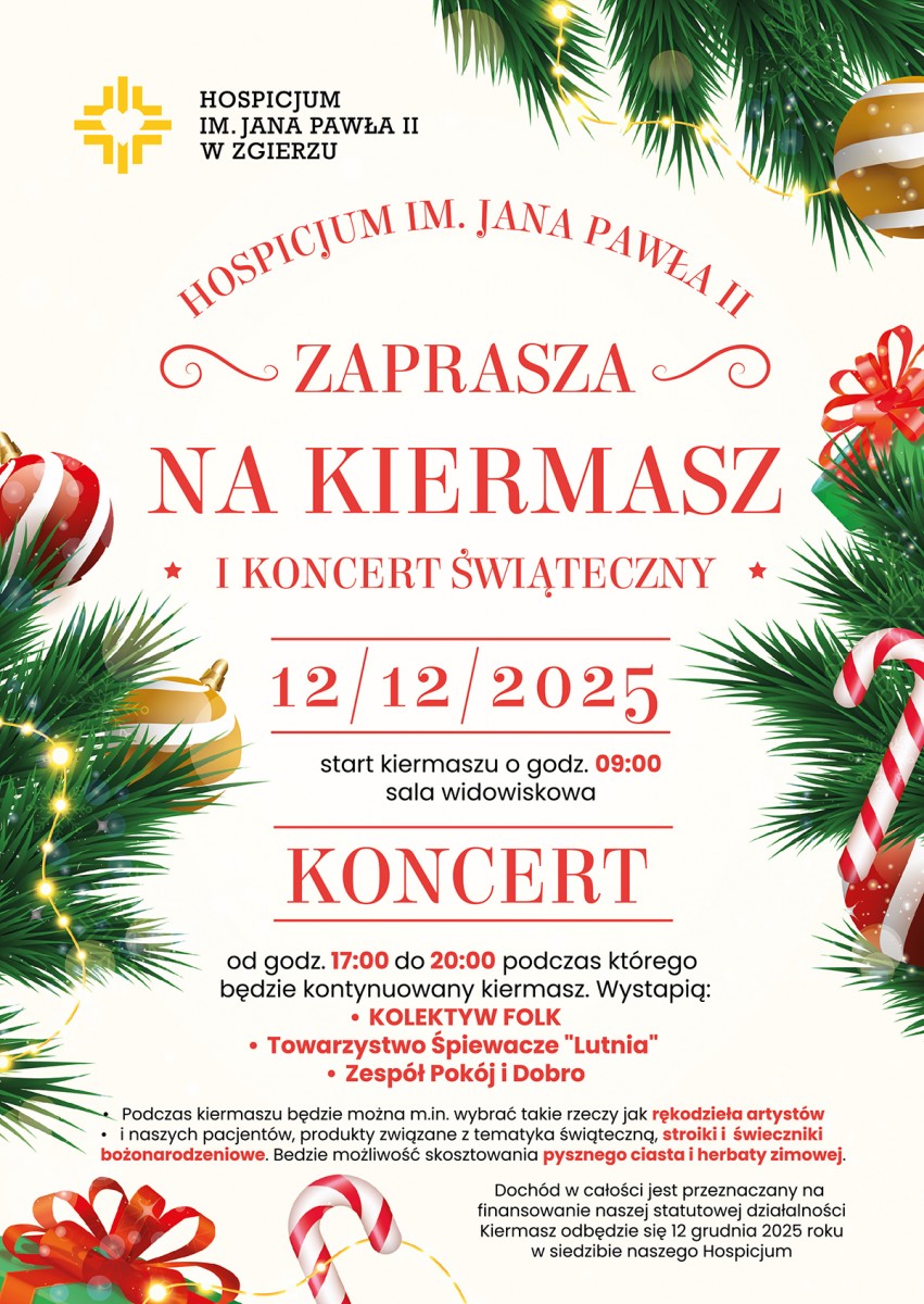 Hospicjum im. Jana Pawła II w Zgierzu serdecznie zaprasza mieszkańców na wydarzenie wprowadzające w bożonarodzeniowy nastrój. Będzie to okazja nie tylko do spędzenia czasu w świątecznej atmosferze, ale przede wszystkim do wsparcia podopiecznych placówki.
