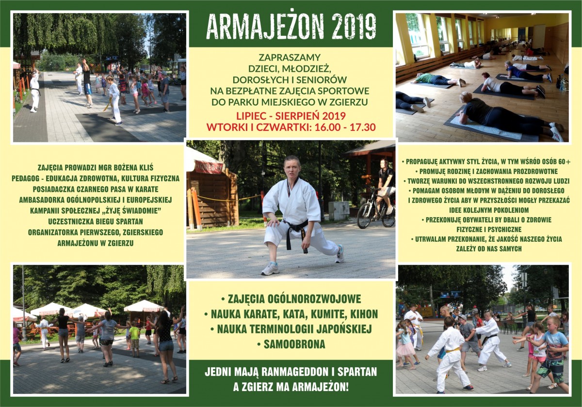 - lipiec i sierpień: wtorki i czwartki w godz. 16:00-17:30 - ARMAJEŻON 2019 - plakat