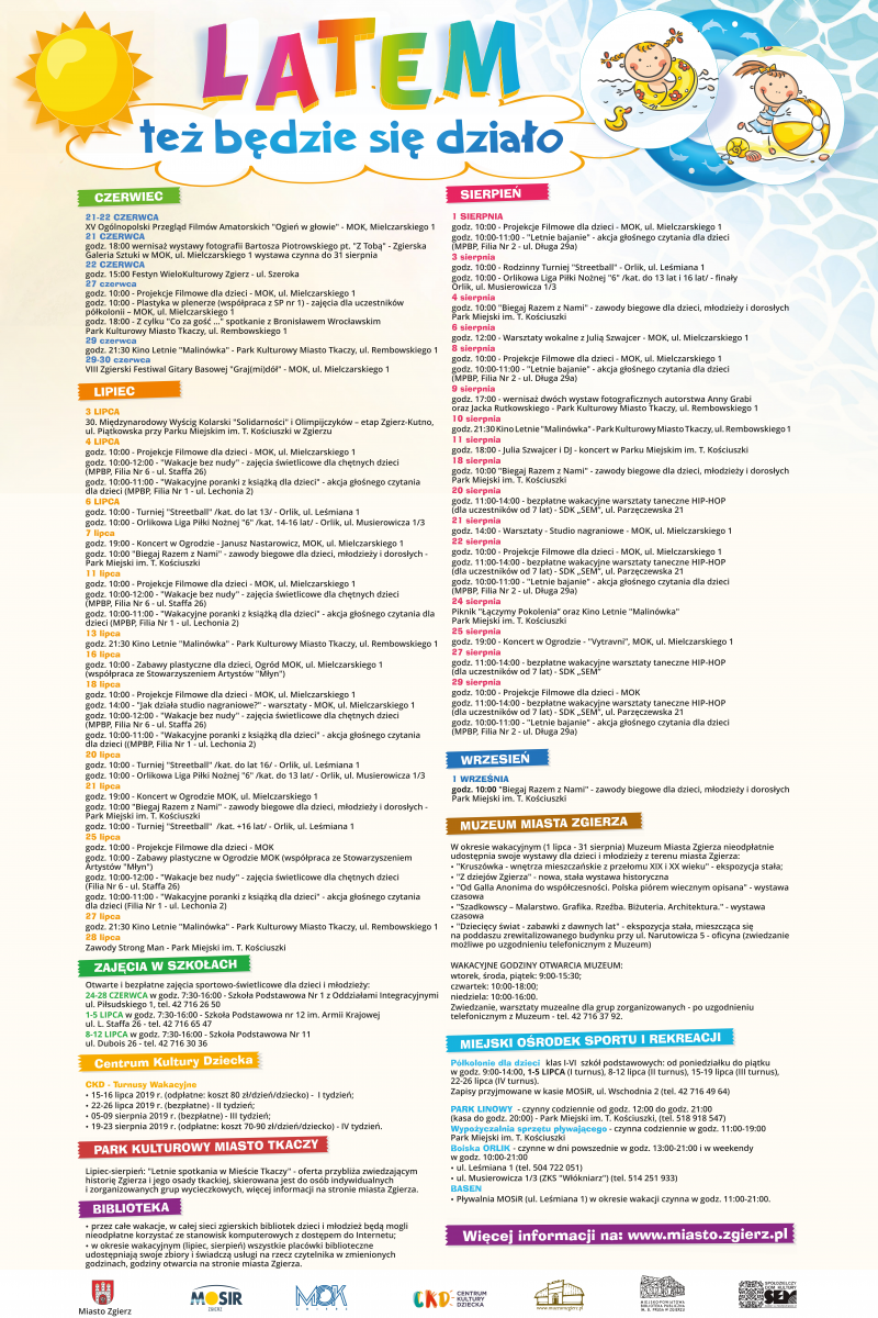 Propozycje spędzenia wolnego czasu podczas wakacji w mieście i okolicy dla dzieci, młodzieży i dorosłych.