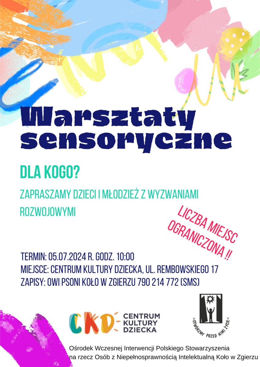 Zapraszamy dzieci i młodzież z wyzwaniami rozwojowymi na bezpłatny letni warsztat sensoryczny, podczas którego postaramy się pobudzić do pracy nasze zmysły i ciało - Facebook wydarzenia.