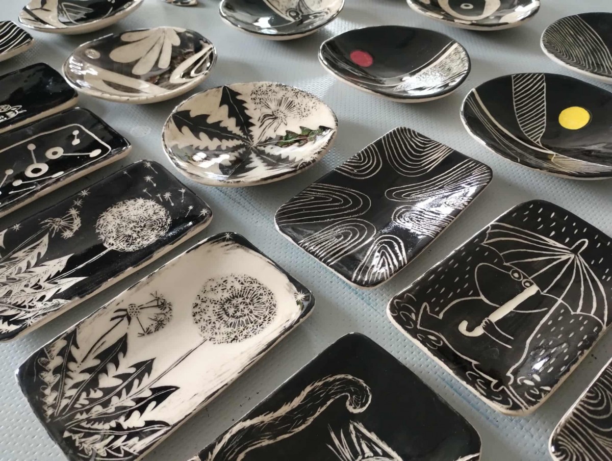 Warsztaty łączące potencjał tradycyjnych technik graficznych oraz ceramiki. Technika sgraffito polega na nakładaniu kolejnych, kolorowych warstw kolorowych glin i na zeskrobywaniu fragmentów warstw wierzchnich. Poprzez odsłanianie warstwy wcześniejszej powstaje precyzyjny rysunek.