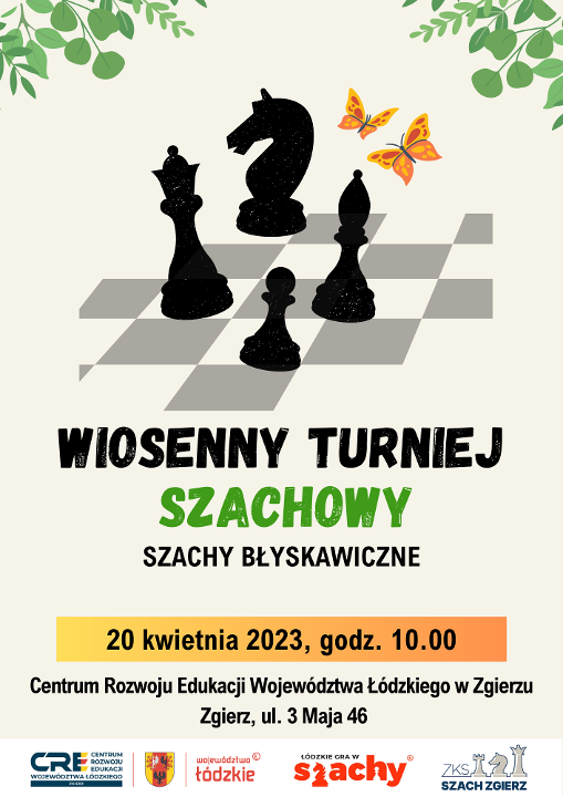 Centrum Rozwoju Edukacji Województwa Łódzkiego w Zgierzu zaprasza na Wiosenny Turniej Szachowy.