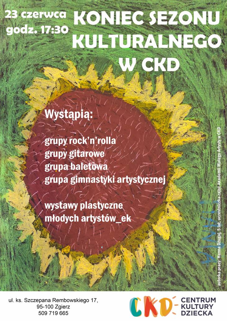 Zapraszamy wszystkich na piknik w ogrodzie (oby tylko dopisała pogoda!), który jak co roku, wieńczy sezon kulturalny w CKD.