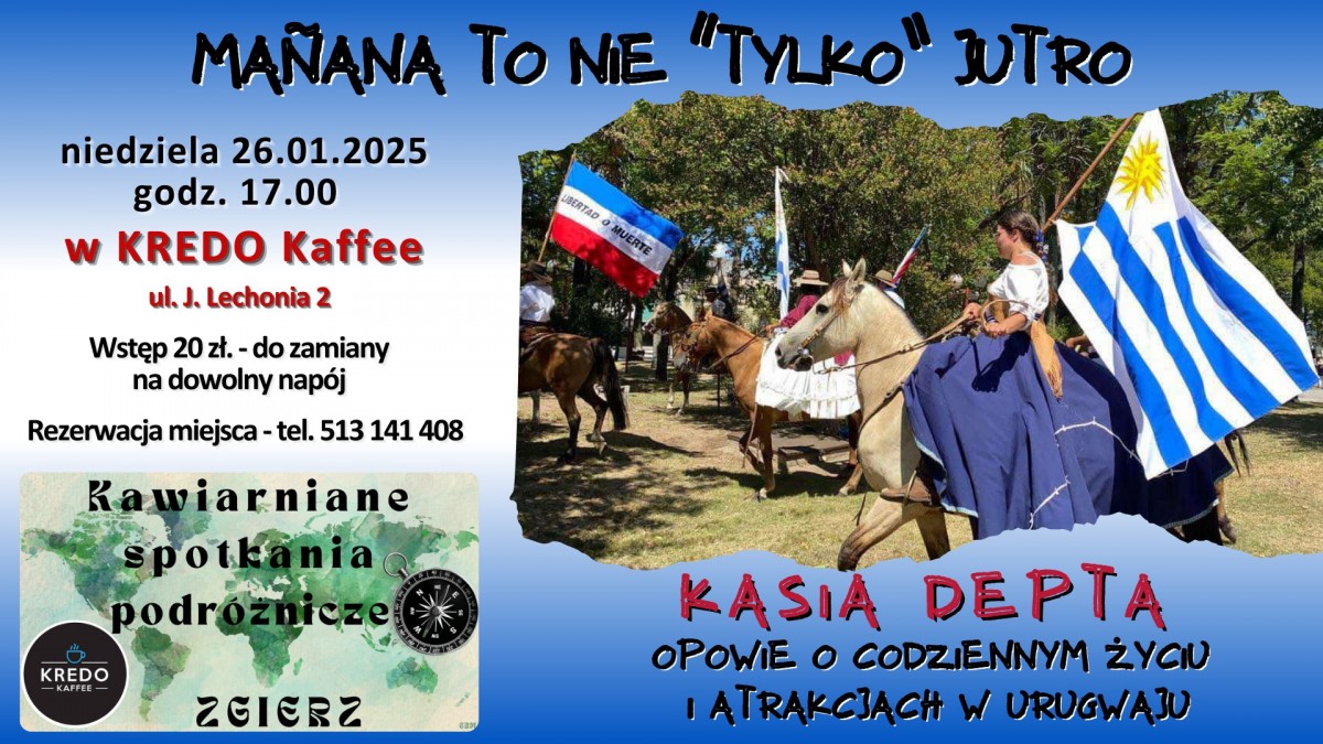 Serdecznie zapraszamy na spotkanie podróżnicze z Kasią Deptą, która opowie o życiu codziennym i atrakcjach Urugwaju, które dobrze poznała mieszkając i pracując jako inżynier w tym kraju przez dwa lata.